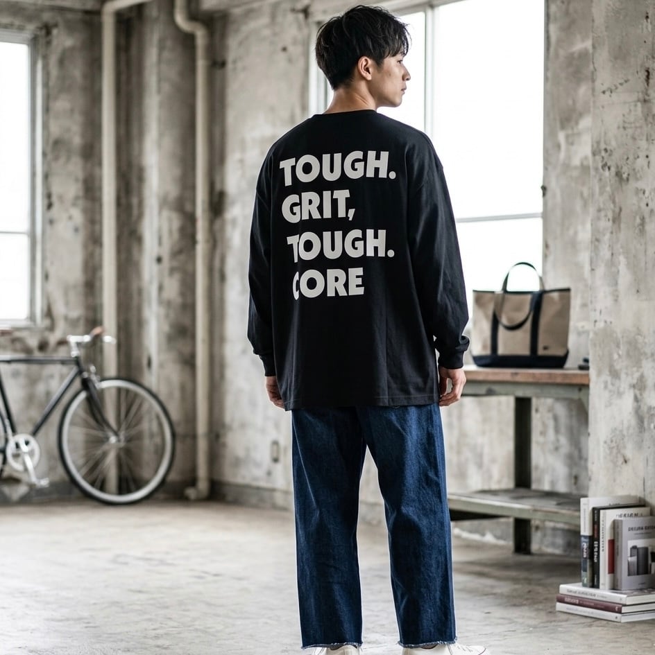 GRIT.CORE ロングスリーブTシャツ【ビッグシルエット】ブラック×ホワイト